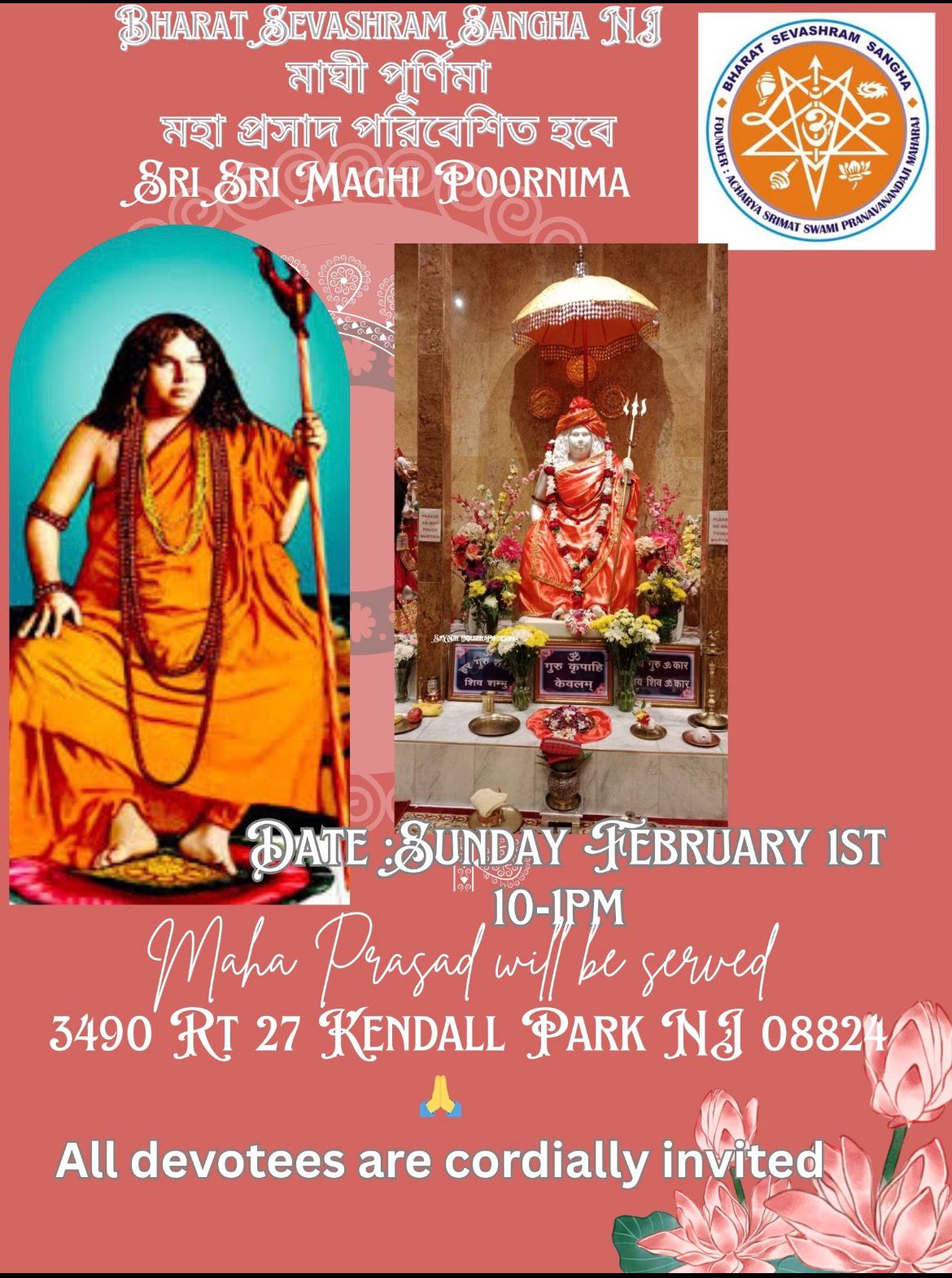This is to inform you that for my annual pilgrimage, I will be leaving for our beloved motherland, India, on Sunday, February 18th. As you know ‘Bharat Sevashram Sangha’ offer multifarious philanthropic activities throughout India, all over the year. This is the time, I carry some funds to help various projects. Please donate for the projects.